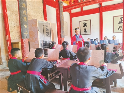 学生在兴贤书院诵读《朱子家训》。杨林川 摄