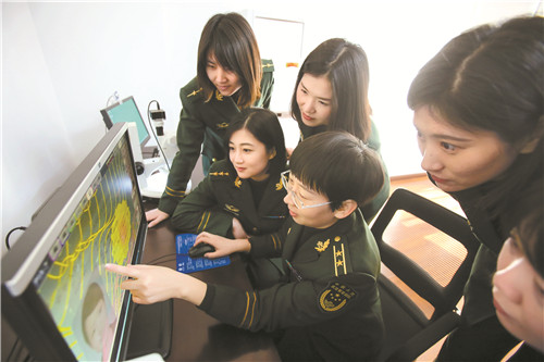 江苏连云港边检站女子办证科主要负责连云港口岸出入境人员和交通运输工具的出入境边防检查工作。为防止不法分子通过伪造证件、签证出入境,女子办证科通过加强识别伪假证件、签证培训,提升检查员查缉伪假证件、签证能力,有力打击非法出入境等不法活动,净化口岸通关环境。图为3月15日,女子办证科的检查员们在一起学习使用文检仪辨别伪假证件。 郑永波 摄