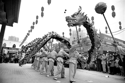 春节期间,湖北省宜昌市夷陵区广泛开展了丰富多彩的群众文化展演活动,为老百姓送上了文化“盛宴”。图为民间艺人表演节目《龙腾盛世》。 张国荣 摄