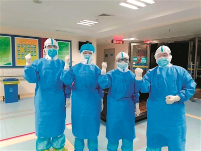 3月5日凌晨零时,南充市中心医院援武汉医疗队护理三组的10名护士穿戴好防护装备,来到隔离病房开始一天的工作。