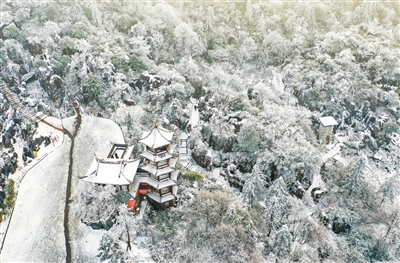 近日,寒潮来袭,华蓥山的瑞雪翩翩而至,天地之间仿佛被雪连在了一起。厚厚的白雪覆盖着山峦、草木、村庄,将华蓥山装点成一个冰清玉洁的世界。图为银装素裹的四川省广安市华蓥山。邱海鹰 摄