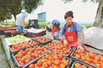 近期,贵州省黔东南苗族侗族自治州榕江县各地农民抢抓农时进行劳作,田间地头处处呈现一派忙碌的景象。图为6月5日,贵州省黔东南苗族侗族自治州榕江县古州镇月寨村的农民在分拣西红柿准备销售。李长华 摄