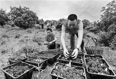近年来,江西省吉安市永新县芦溪乡依托山地资源优势,采取“帮扶单位+基地+农户”的发展模式,通过种植杨梅、甜叶菊、油茶等作物增加农民收入,助推乡村振兴。图为6月10日,在平丰村杨梅基地,志愿者帮助村民分拣杨梅。朱国朝 周亚茂 摄