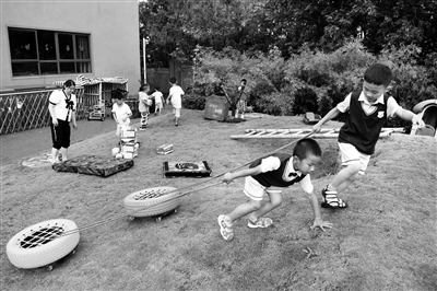 近年来, 安徽省铜陵市义安区东联中心幼儿园根据农村幼儿园的特点,在贯彻落实国家《3-6岁儿童学习与发展指南》精神中,坚持“以游戏为基本活动”,积极开展户外自主游戏,幼儿园建立了时光小镇、野战营地、山坡探险、种植园等富有特色的游戏区域,满足幼儿多元化的游戏体验,让幼儿在游戏中获得快乐和自信,敢于探索与创造,学会交往与表达。图为近日,小朋友在义安区东联中心幼儿园开展户外自主游戏。 过仕宁 摄