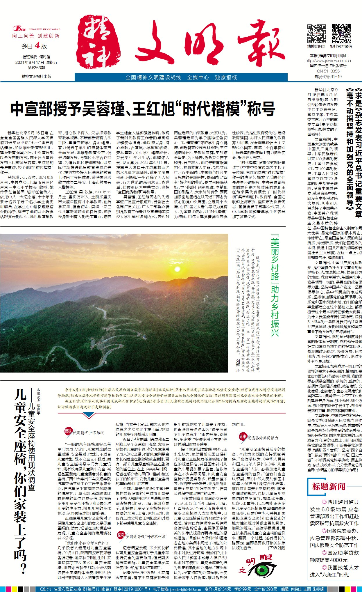 中宣部授予吴蓉瑾、王红旭“时代楷模”称号