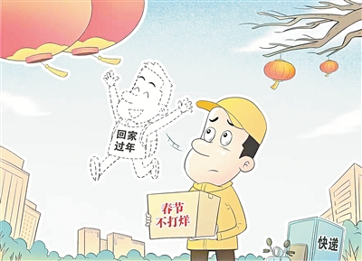 “有钱没钱,回家过年”,是每位劳动者最朴素的愿望。对常年在外奔波,平时难得与亲人团聚的快递员来说,这种期盼尤为迫切。一年到头,他们总是穿梭于街头巷尾,顶风冒雪、起早贪黑,用脚步丈量城市,用奔波连接万家,加班加点于他们而言,可谓家常便饭,他们承受的苦与累,就等着能在春节期间得以缓解。对于很多人而言,春节这个中华民族最隆重的节日,既是身心的“避风港”,又是稍事休息,以更加饱满的姿态投身工作的“加油站”。快递员因为“春节不打烊”,被迫继续高负荷工作,回家看看父母、陪陪孩子、吃上一顿热热闹闹年夜饭的愿望,就此搁浅,内心那种失落可想而知。